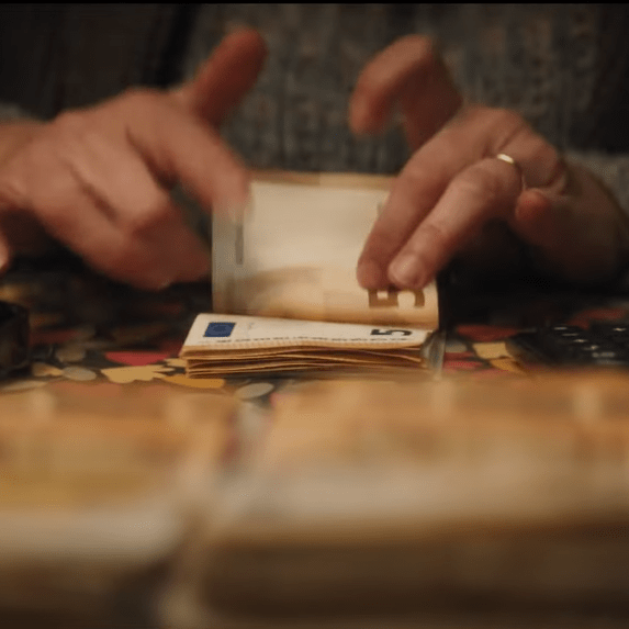 Non content d’être motivé de manière sous-jacente par ces considérations d’actualité (le pouvoir d’achat ! l’inflation ! ah !3), nos protagonistes sont accompagnés d’une véritable réflexion consciente et verbalisée sur la place de l’argent dans leur vie. “Qu’est-ce que tu ferais toi si tu trouvais deux millions d’euros en échange de quitter ton mari, ton bar, ta famille ?” Voici la question (reformulée par mes soins) que pose Roland (Poelvoorde) à cette barista qui n’apparaîtra d’ailleurs que durant cette unique scène. Bonne représentante du mystérieux “bon sens populaire”, elle est l’archétype de ces personnages plats dont la seule caractéristique est d’être “comme tout le monde”, “sans problème”, et de posséder un certain “franc parler”. Je mets des guillemets parce que je tiens mes sources d’un imaginaire que j’imagine être commun. “Sans hésitation”, répond-t-elle. Et tout le monde a l’air d’accord avec elle : ils vendent leur conscience pour une TV 4K. La résolution des problèmes se fait par l’argent, et un argent sale qui plus est, tombé du ciel apparemment, qui va pourtant jusqu’à résoudre la relation conflictuelle de Roland avec sa fille. Prenons l’exemple du mariage de Michel et Cathy (Alamy). Narrativement, ce couple a plusieurs problèmes qu’il va s’agir de résoudre lors du dénouement. On apprend tout d’abord que ces derniers ne couchent plus ensemble, et ensuite seulement qu’ils ne se parlent plus non plus, depuis qu’ils ont appris que leur enfant “n’était peut-être pas si normal que ça” (sorte de blague récurrente, portant sur le fait que l’enfant montre quelques comportements socialement inadaptés). On sait aussi qu’ils ont beaucoup de dettes et ne peuvent pas vraiment se permettre des folies comme un sac de bonne marque, ou une bonne voiture. A laquelle de ces problématiques auront-ils réussi à répondre à la fin de leur voyage ? Vous l’aurez deviné, l’argent. Ils n’arrivent toujours pas à admettre que leur enfant a besoin de leur attention particulière et le laissent seul à une soirée pour aller danser dans le Donjon précédemment évoqué. Donjon dans lequel ils semblent tout à fait hors de propos, déguisés en Fée Clochette et Lucky Luke, à danser un slow. Complètement happés par la fantasmagorie de cette expérience qu’ils ont les moyens de se permettre, ils ne se demandent même pas si elle est véritablement capable de leur apporter le bonheur et la tranquillité dont ils ont besoin.