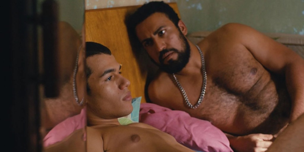 M. C. : J’ai connu beaucoup de TDS brésiliens dès mon arrivée à São Paulo, puis à Paris. En France le discours abolitionniste est très fort, mais au Brésil l’idée est plutôt de donner des droits aux TDS. C’est un métier très présent dans les villes, comme à Rio, très touristique. Pour autant, même si la prostitution n’est pas un crime, il y a beaucoup de persécutions policières et de chantages. C’est un métier qui a beaucoup changé avec internet, on commande désormais un TDS comme on commanderait un Deliveroo. Mais dans le centre-ville, il y a toujours des prostitué·es qui ne travaillent que sur le terrain. Je préfère cette idée d’espace public, de rencontre avec les gens. C’est la mise en avant de cette dimension que j’avais apprécié dans Anora (Sean Baker, 2024). Les comédiens João Pedro Mariano (Baby) et Ricardo Teodoro (Ronaldo)ont fait un important travail de repérage. Ils sont allés dans les cinémas, les saunas, ils ont parlé avec les TDS. De mon côté j’ai beaucoup d’amis TDS, c’est quelque chose de très présent pour moi. A Paris et à São Paulo j’ai pu les inviter à voir le film. Ils ont trouvé leur représentation juste, et c’était incroyable.