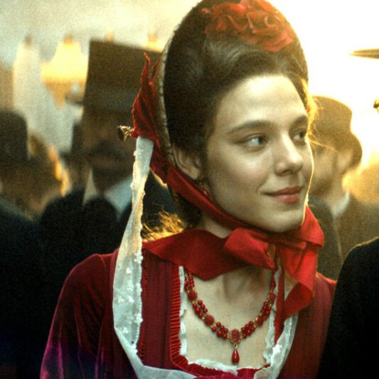 Préparez-vous à entrer dans une spirale de folie, celle d’Antonina, à plonger dans une image qui oscille entre le fantasme et la réalité. Théâtre de ce drame macabre, la Russie du XIXe siècle est présentée sous un bien triste jour : les personnages traversent des rues boueuses, mal famées, dont les effluves fécales se font presque sentir à travers l’image. A l’écran défilent des corps détruits, malades, grotesques, pathétiques, des personnages sombres et décrépis. Il faut dire que le grain grisâtre de l’image fatigue un peu la rétine au bout d’une heure. J’ai soupiré en constatant que celui-ci m’accompagnerait jusqu’à la fin de mon visionnage. Le réalisateur joue de cette palette de couleurs très limitée en l’incorporant au mode de vie du personnage, lui-même limité par ce que son mari attend d’elle. Et il n’attend rien d’elle, puisqu’il ne la désire simplement pas : pas de désir, pas de couleurs. Il lui demande au contraire (au plus grand dam de mes pauvres yeux s’accrochant alors au moindre pixel de couleur) de se séparer de sa seule robe rouge. Bien sûr, cette atmosphère morne n’est pas là par hasard, elle permet de mettre en valeur le glauque de toute cette histoire, alors que les seuls rayons de soleil qui illuminent la vie d’Antonina sont blafards.